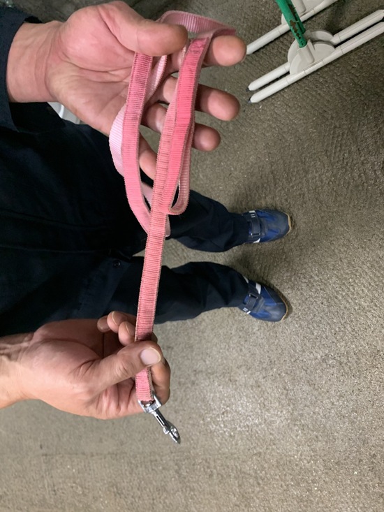 茶色ベルトの首輪と青白ノミ取りの首輪