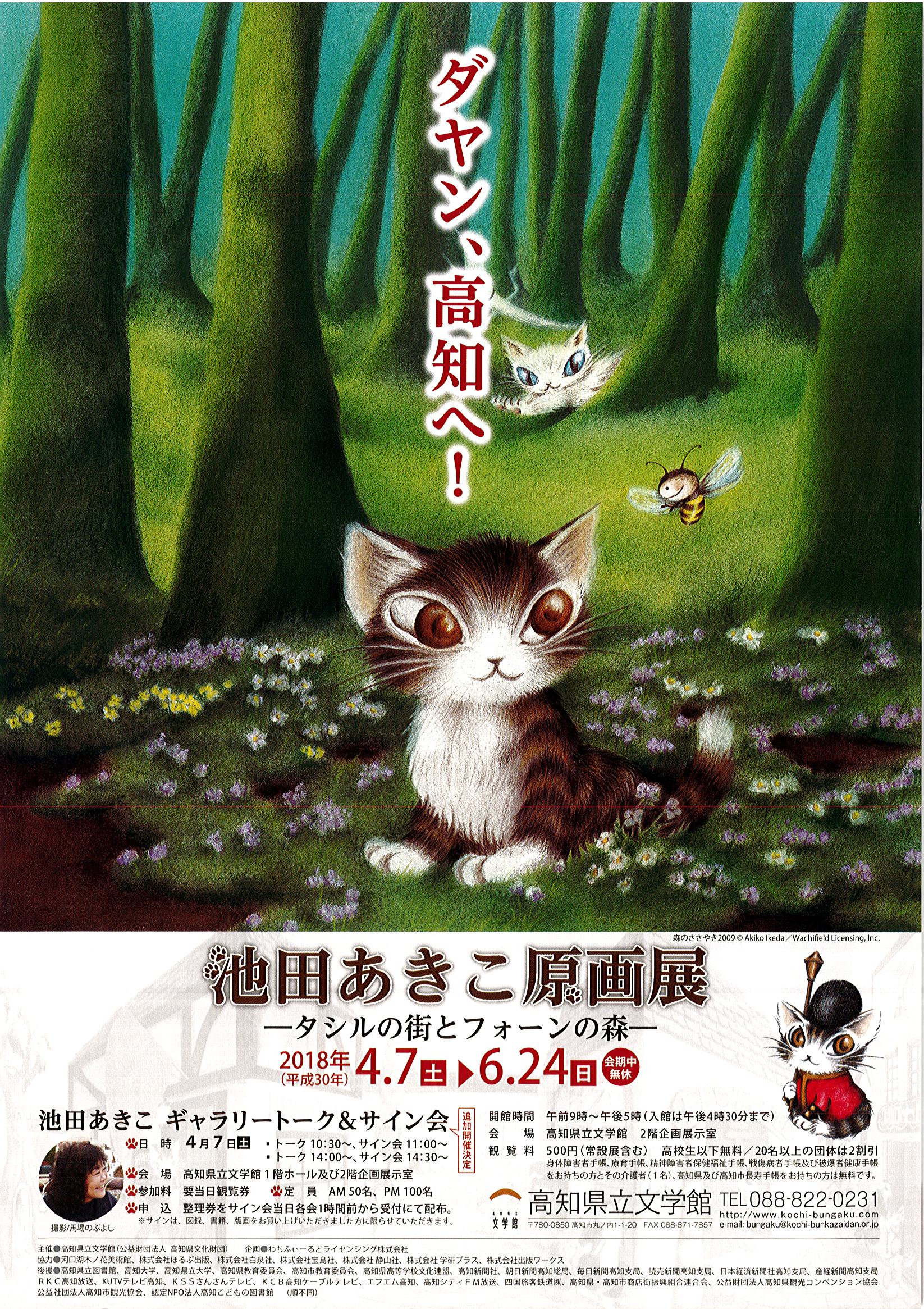 すでに開催中のご案内となりますが、池田あきこさんが作りだした、猫のダヤンと仲間たちが繰り広げるファンタジーの世界が高知にやってきました。ダヤン誕生35年を迎えた今でも絵本やグッズなど多くのファンに愛され続けています。