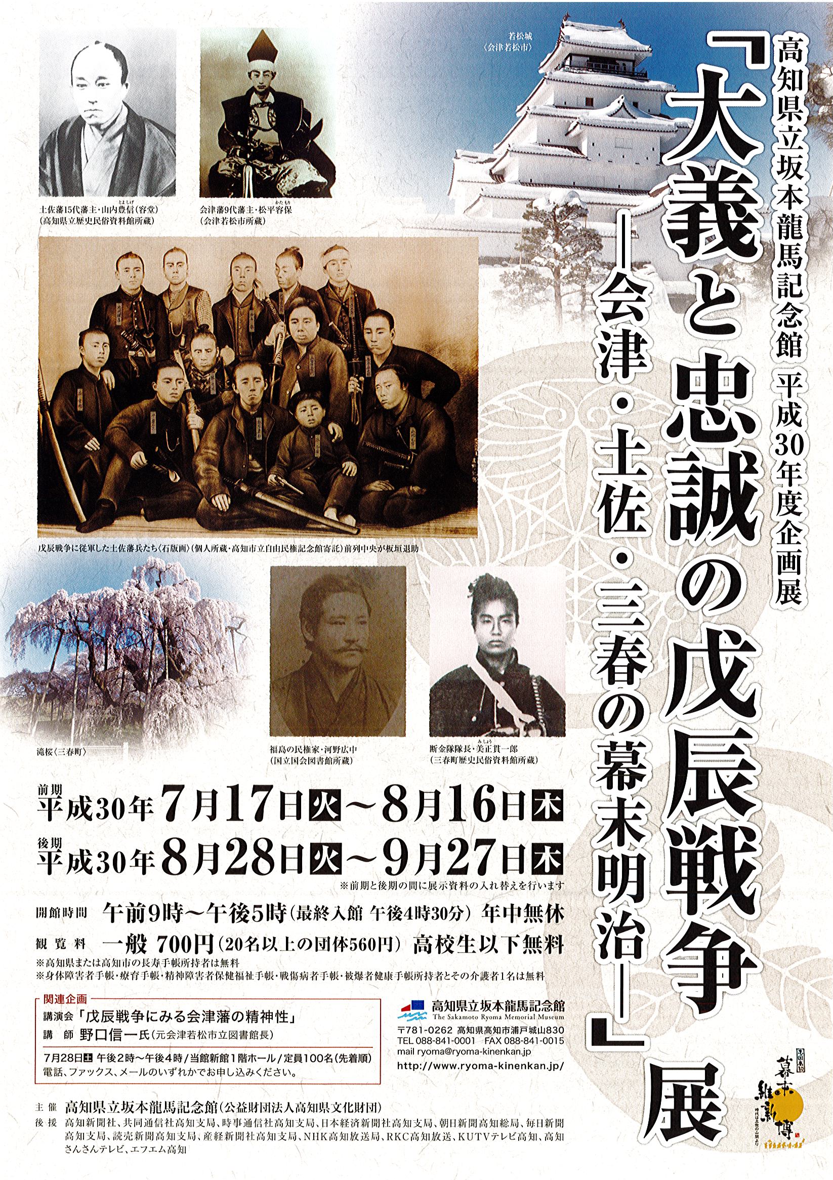 戊辰戦争から150年。幕末以降、会津戦争に至る土佐と遠く離れた会津との歴史的な関わりを、展示を通じてご紹介します。ぜひご覧ください。