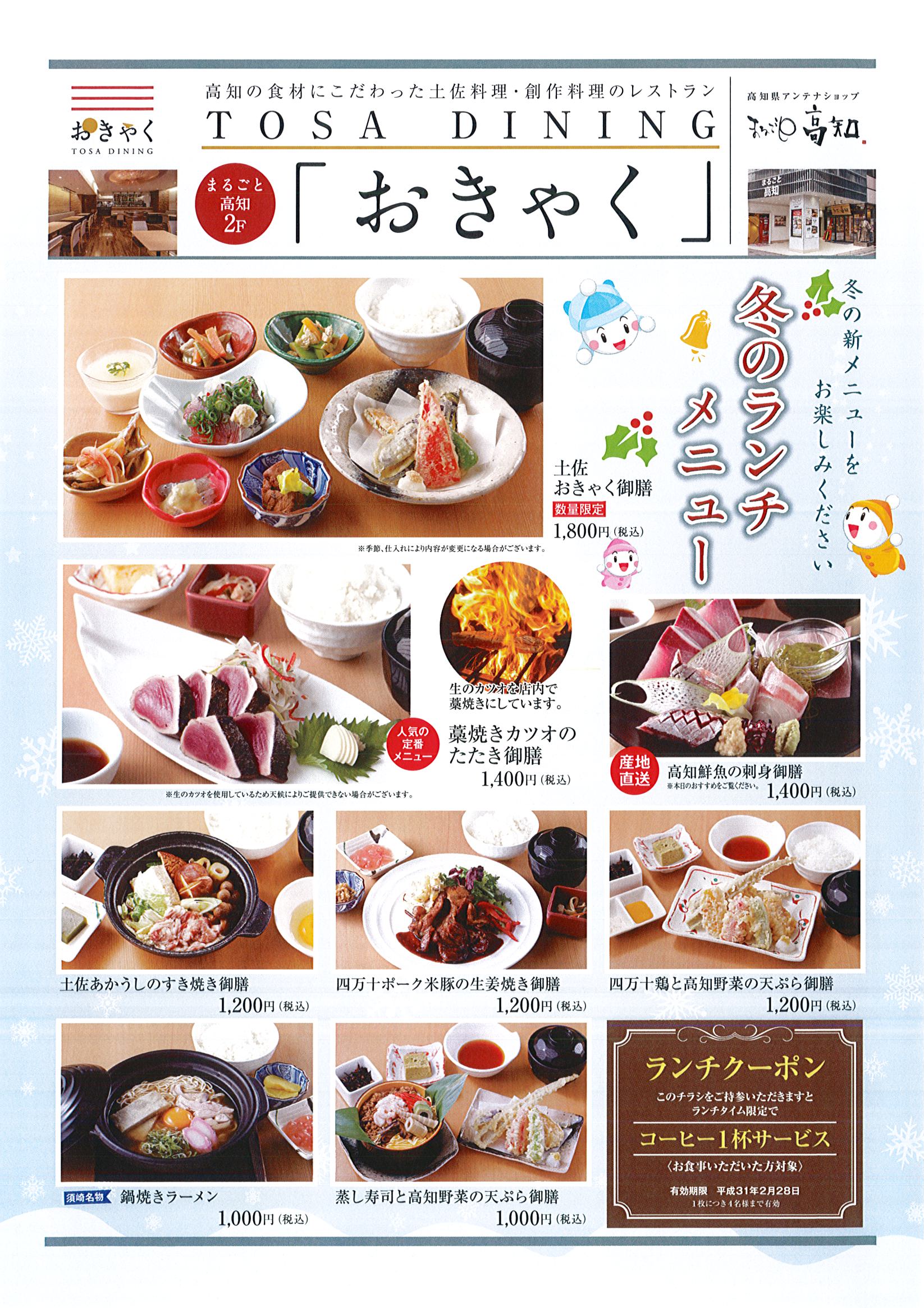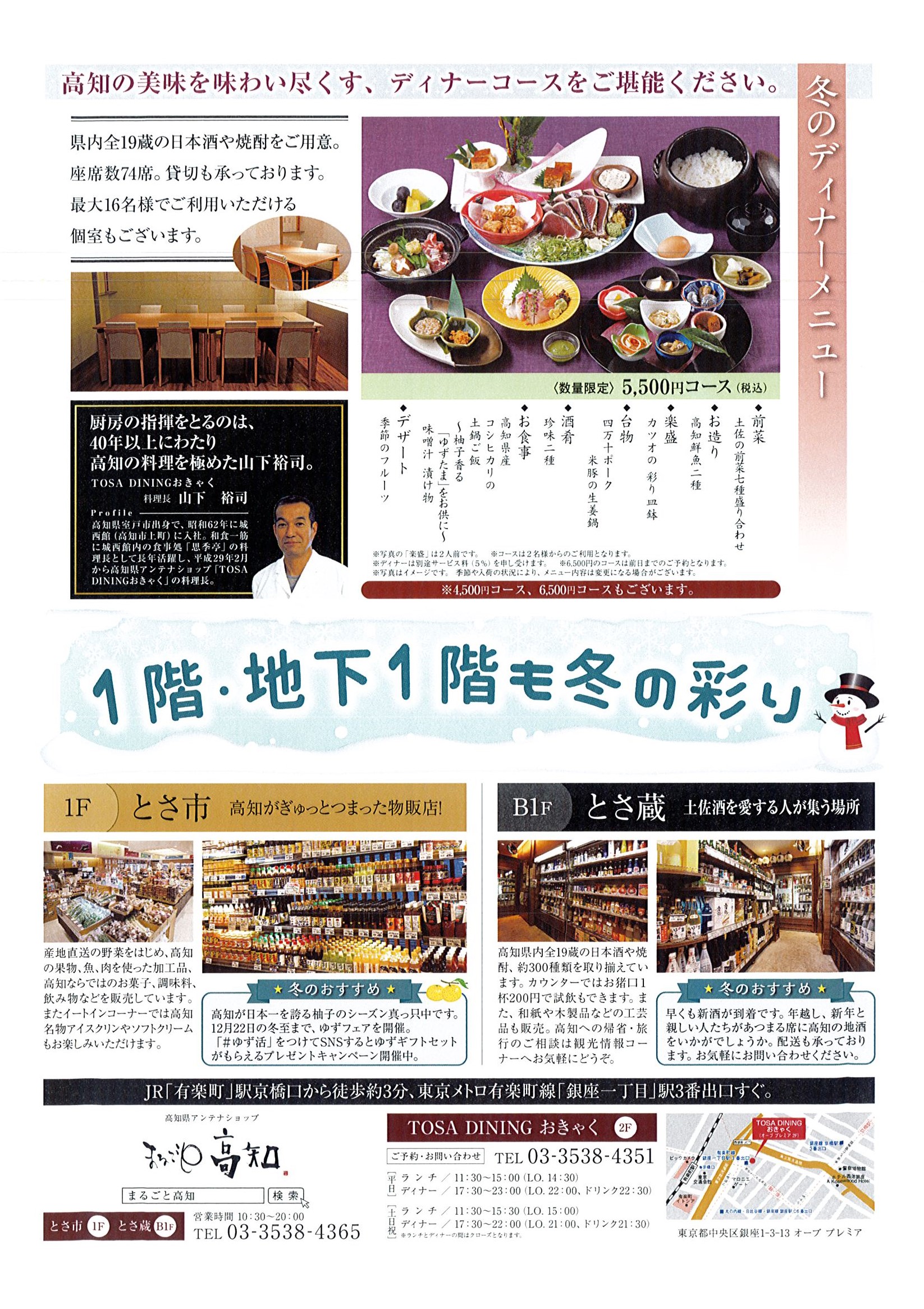 まるごと高知 TOSA DINING「おきゃく」の冬メニューが始まりました!!