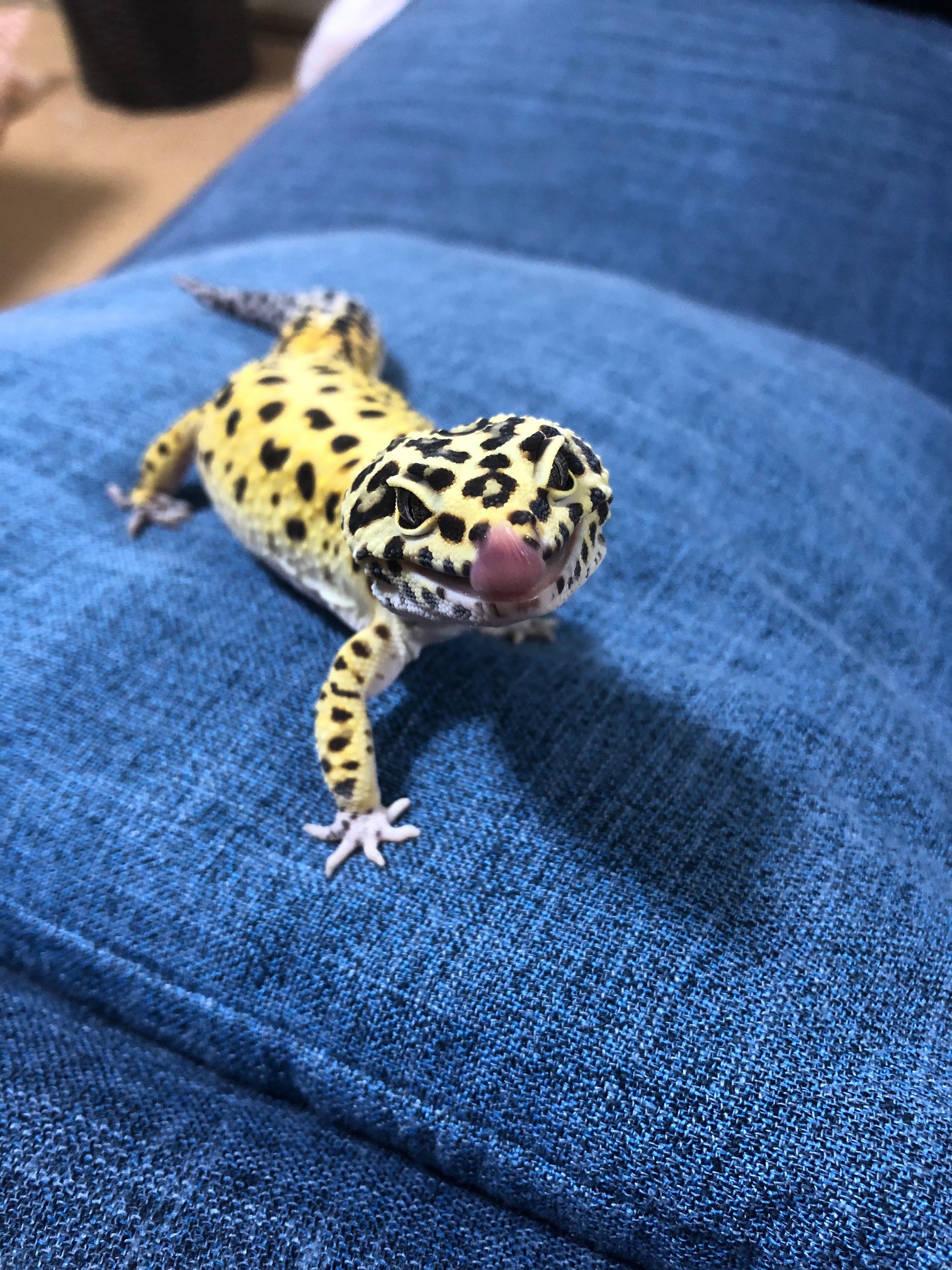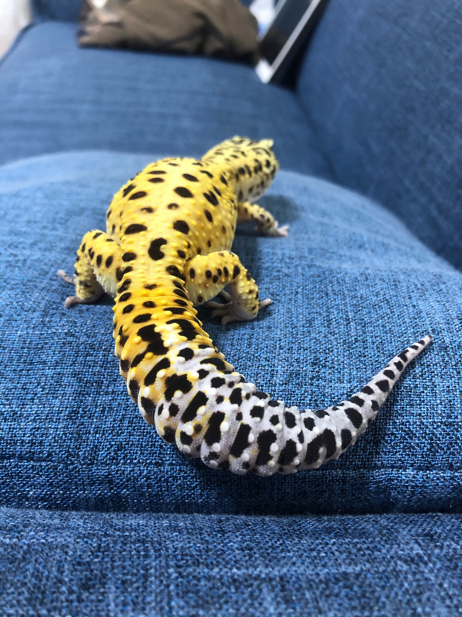 ぱーやんとは、レオパードゲッコー(和名 ヒョウモントカゲモドキ)大きい尻尾が特徴です。中には栄養が蓄えられており、水だけで数ヶ月くらいは生きられるそうです。ともに理解を深めながらの人間とトカゲの共生。とても興味深いですね。