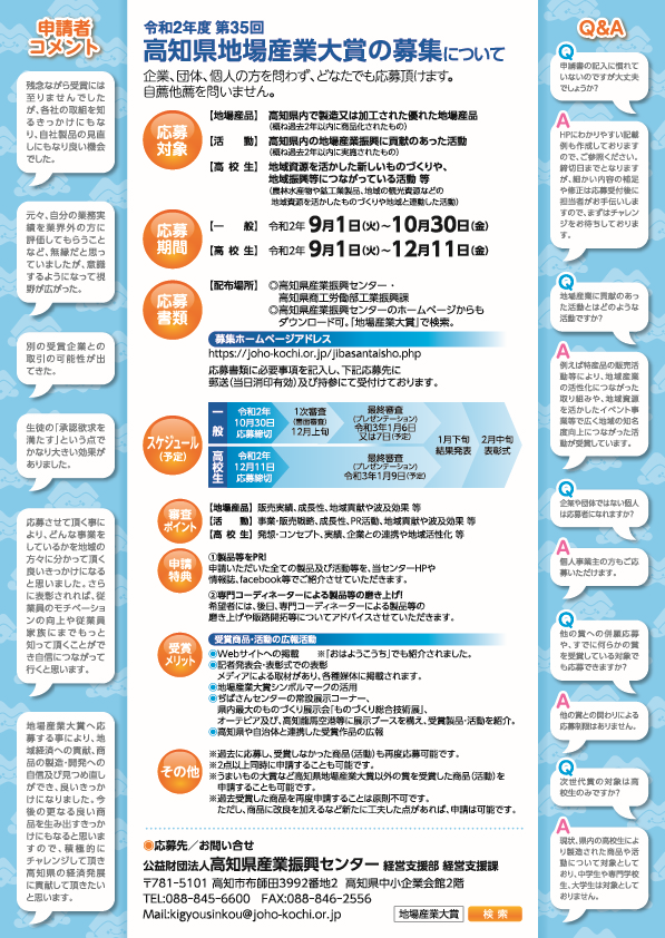 高知県内で作り出された優れた地場産品や地場産業に貢献のあった活動を顕彰します。