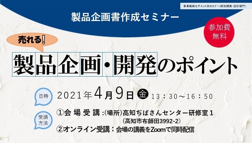 売れる製品企画・開発のポイントのセミナーが開催されます。