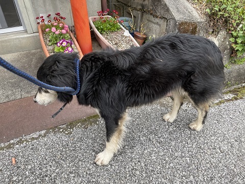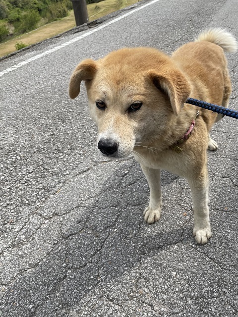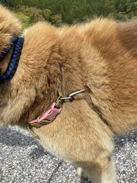 雑種 メス 首輪はしていないが、自家製ハーネス付き