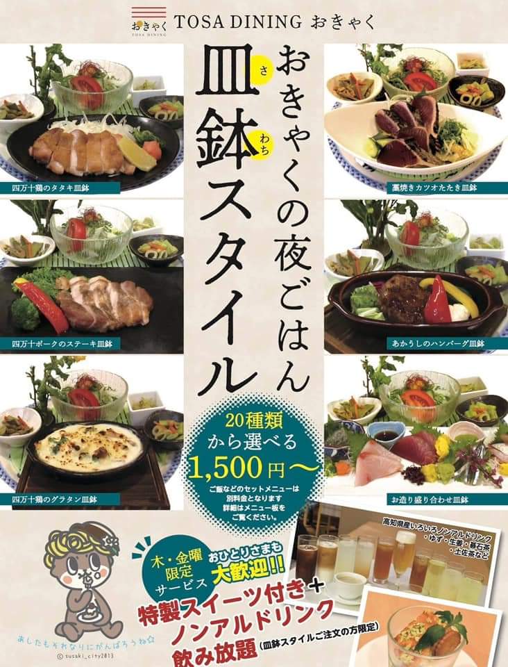 なんと!【木・金曜日のディナータイム限定】で、皿鉢スタイルご注文の方に、デザート・ノンアルコールドリンクが付きます。なんとノンアルコールは飲み放題! https://www.marugotokochi.com/news/1025/
