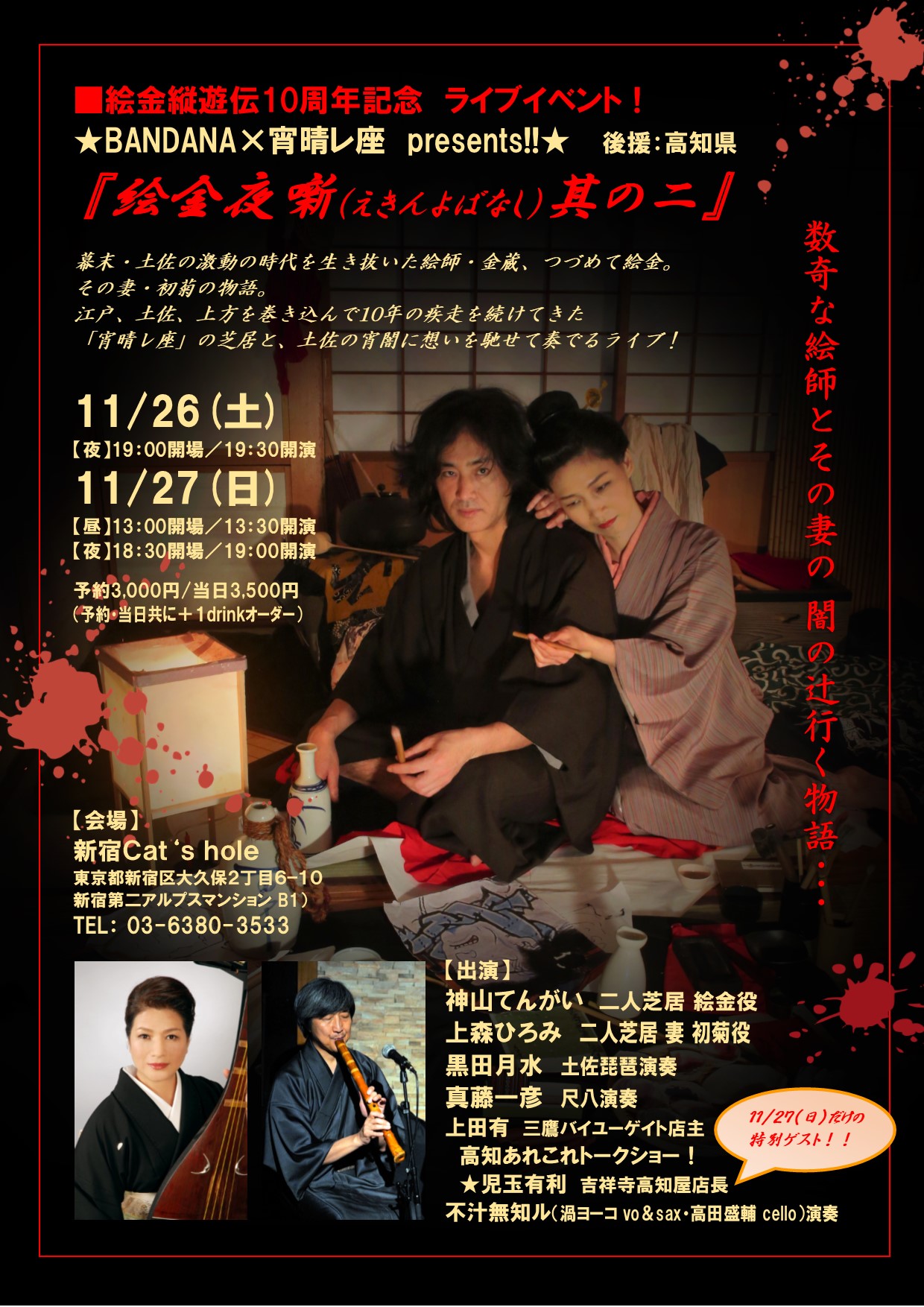 神山てんがい(二人芝居 絵金役)、上森ひろみ(二人芝居 初菊役)