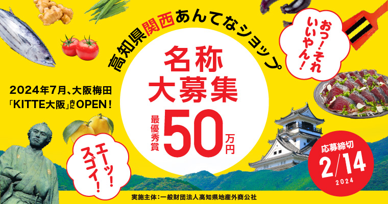 今年7月にJR大阪駅直結の新商業施設「KITTE大阪」内にアンテナショップがオープンします。その名称を、1月15日から2月14日の期間、募集します。