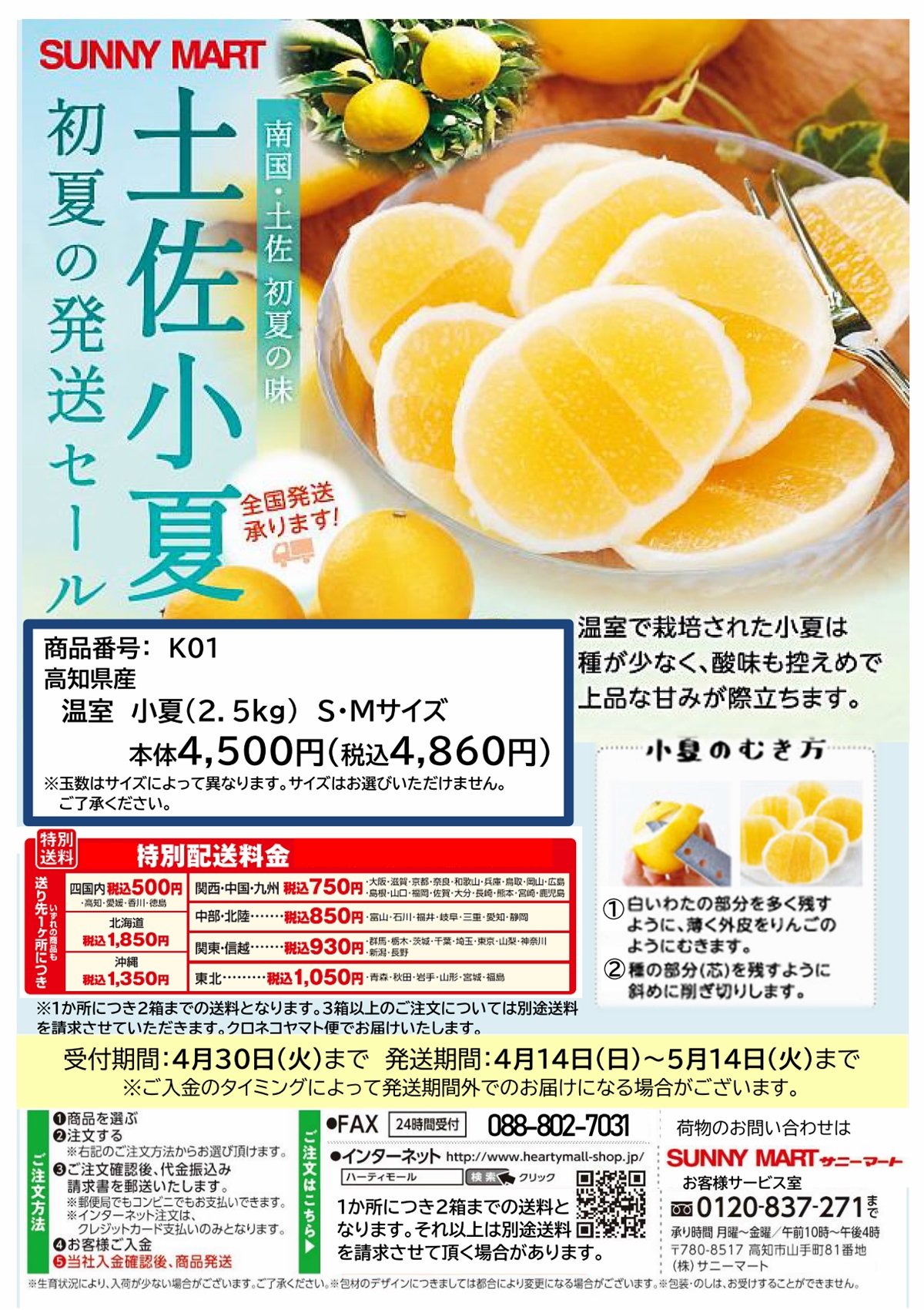 サニーマート様より、小夏の発送セールのご案内が届きました!