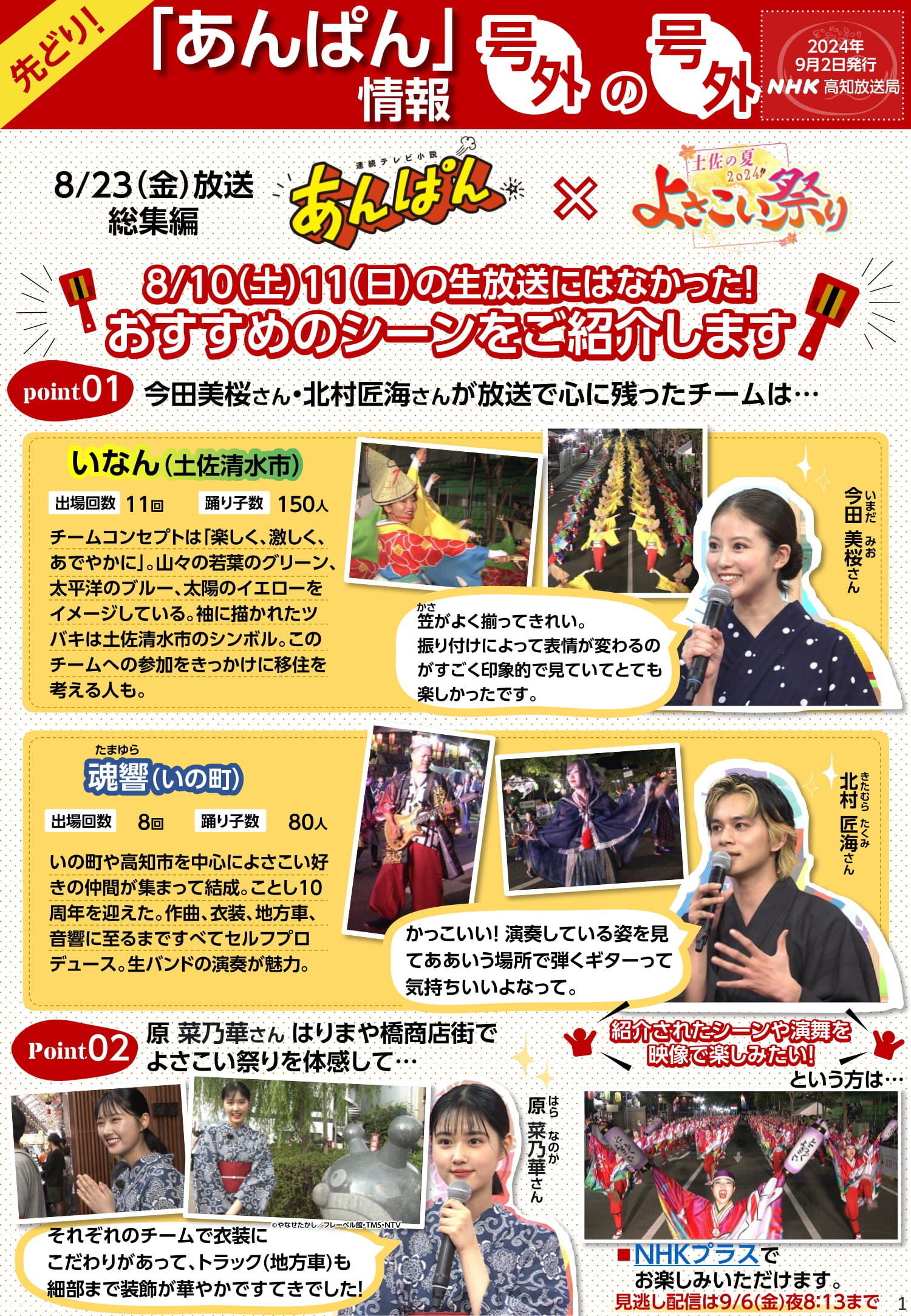 さて、ご案内が遅くなりましたが、NHK高知放送局より、今回は「号外の号外版」ということで、8月10日(土)8月11日(日)の生放送になかったおすすめのシーンを紹介させていただきます。