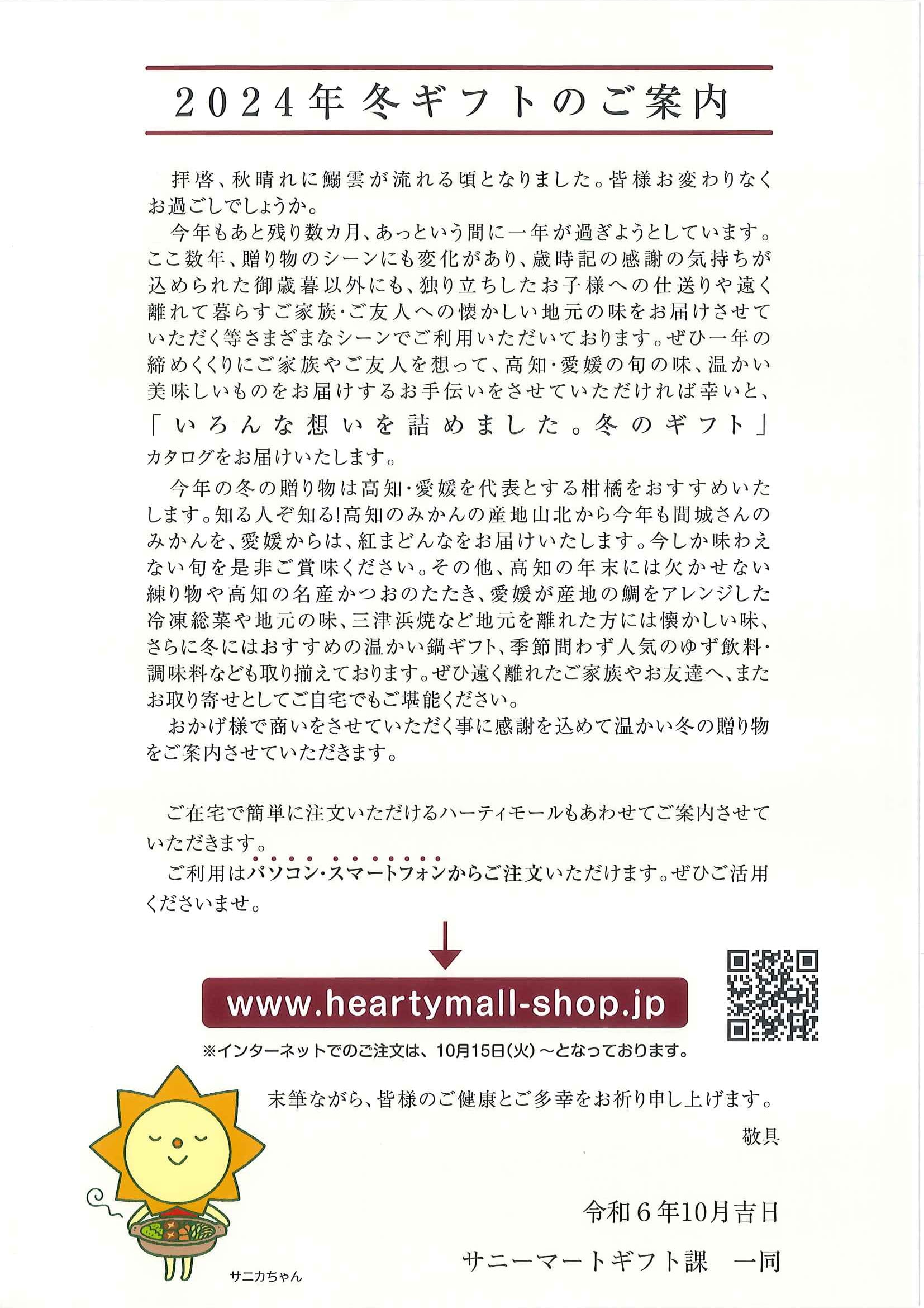 さて、サニーマートより、「冬のギフト」のご紹介です。