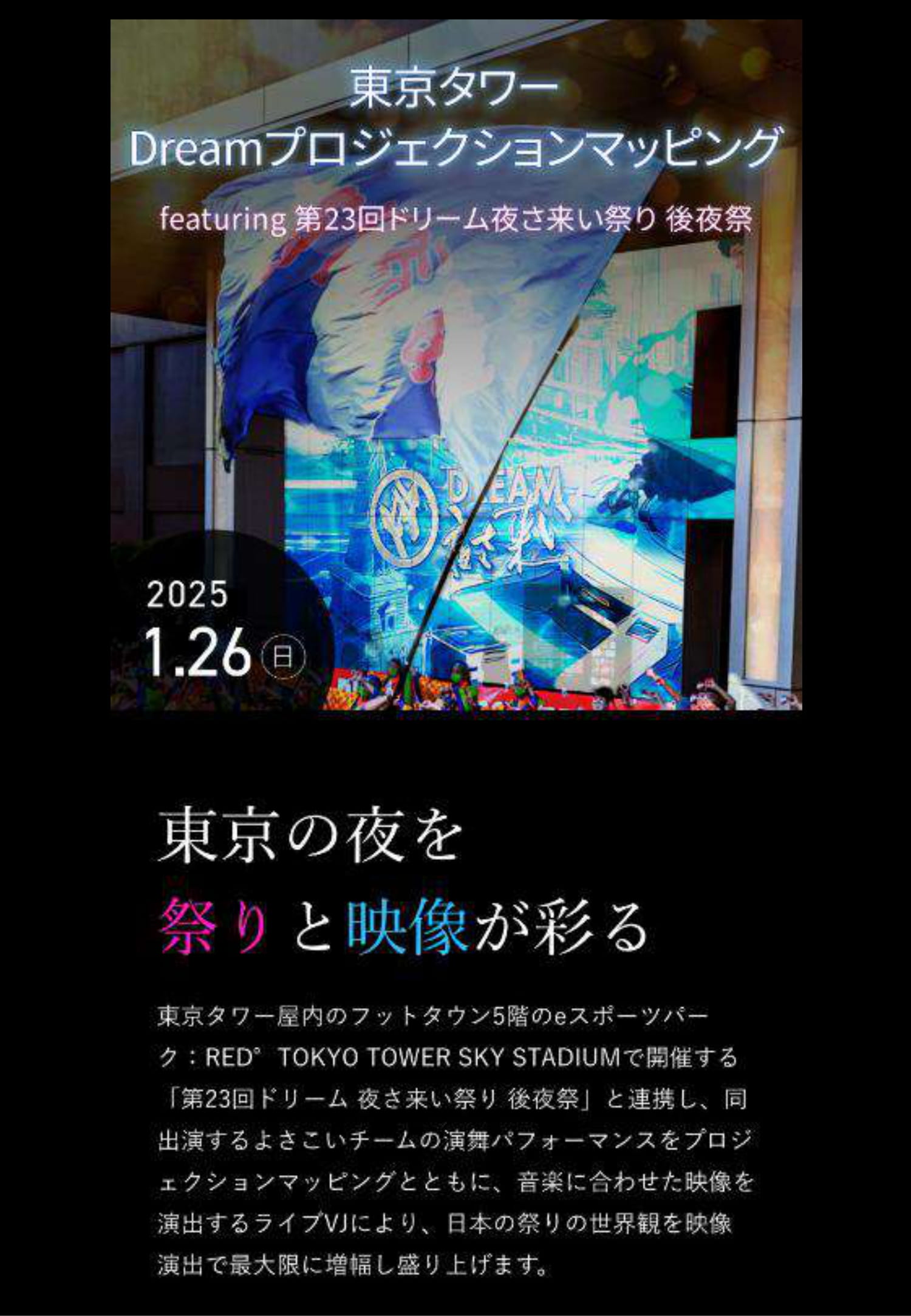 ぜひ皆様、東京タワー初のプロジェクションマッピング+ よさこいチームのコラボ演舞を見に行きませんか?
