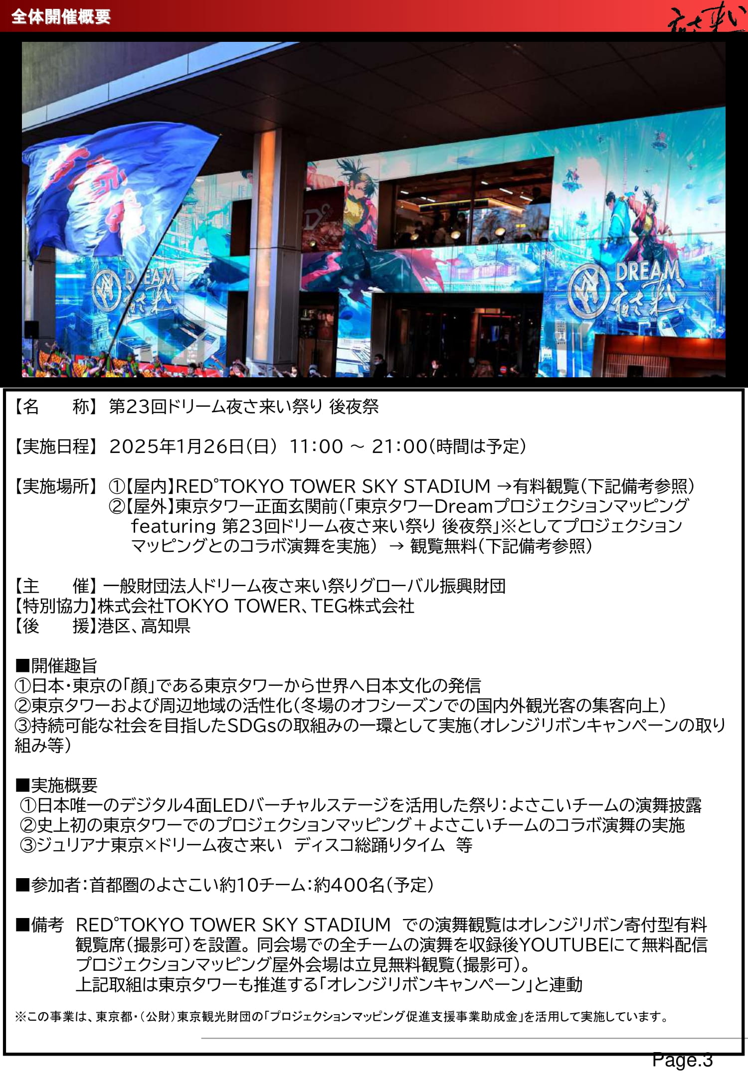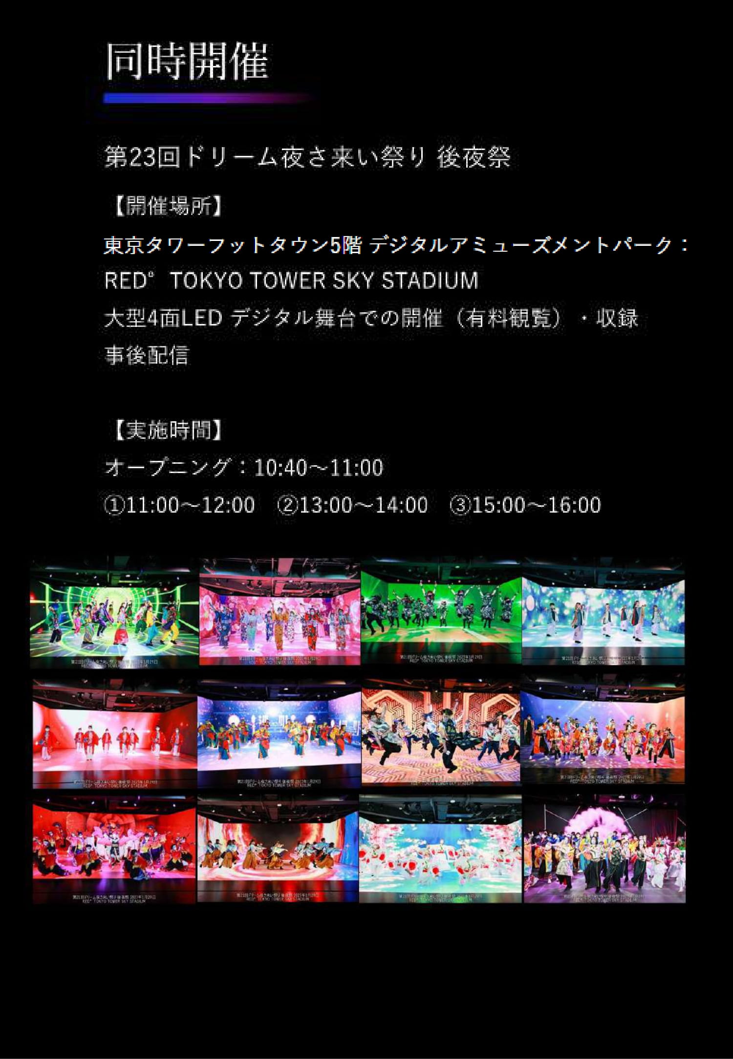 ドリーム夜さ来い祭りより、今週26日(土)にドリーム夜さ来い祭り後夜祭が、東京タワーにて開催されます。