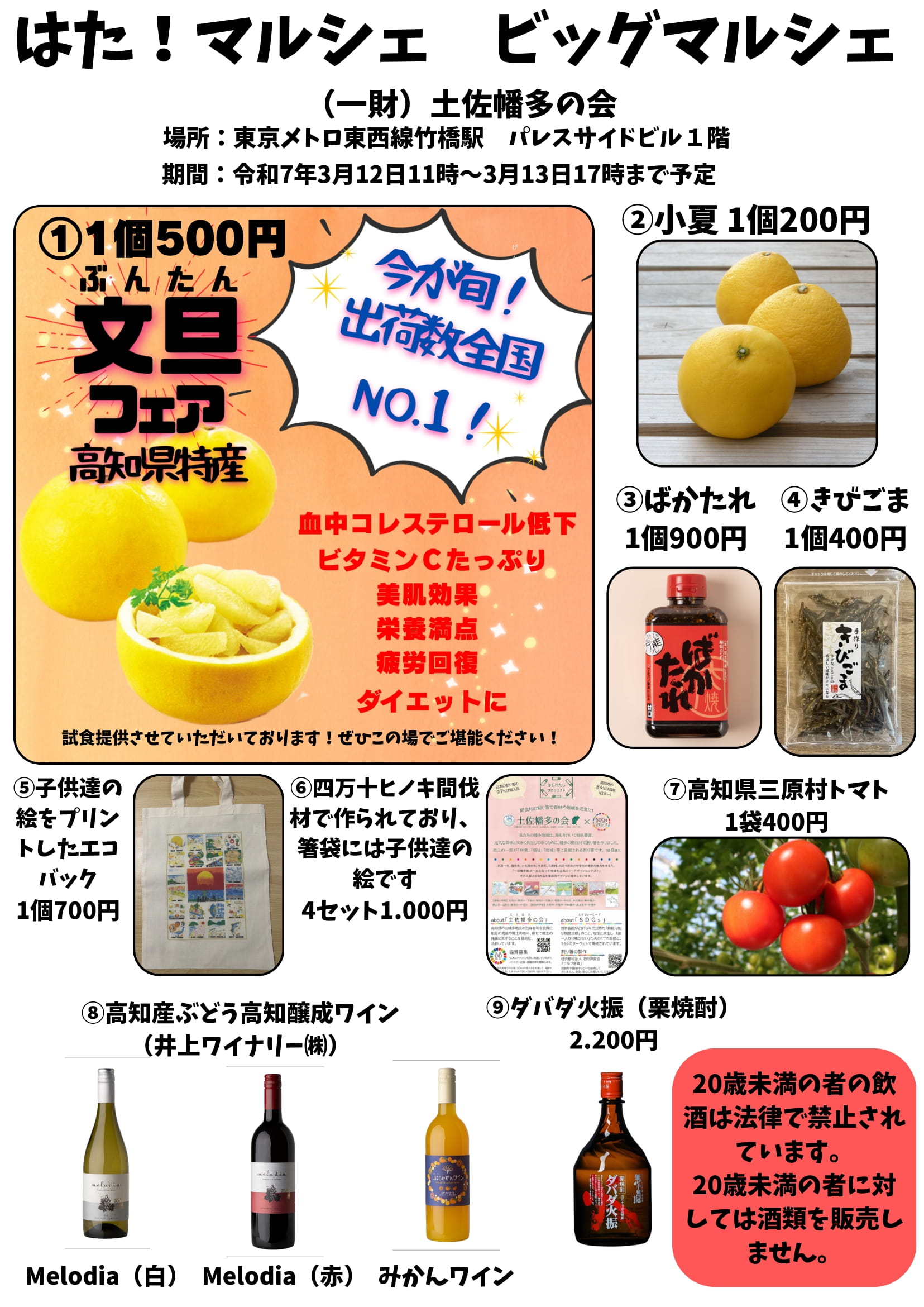 土佐幡多物産のマルシェ「はた!マルシェ」は、「ビッグマルシェ」として東西線竹橋駅のパレスサイドビルで開催いたします。