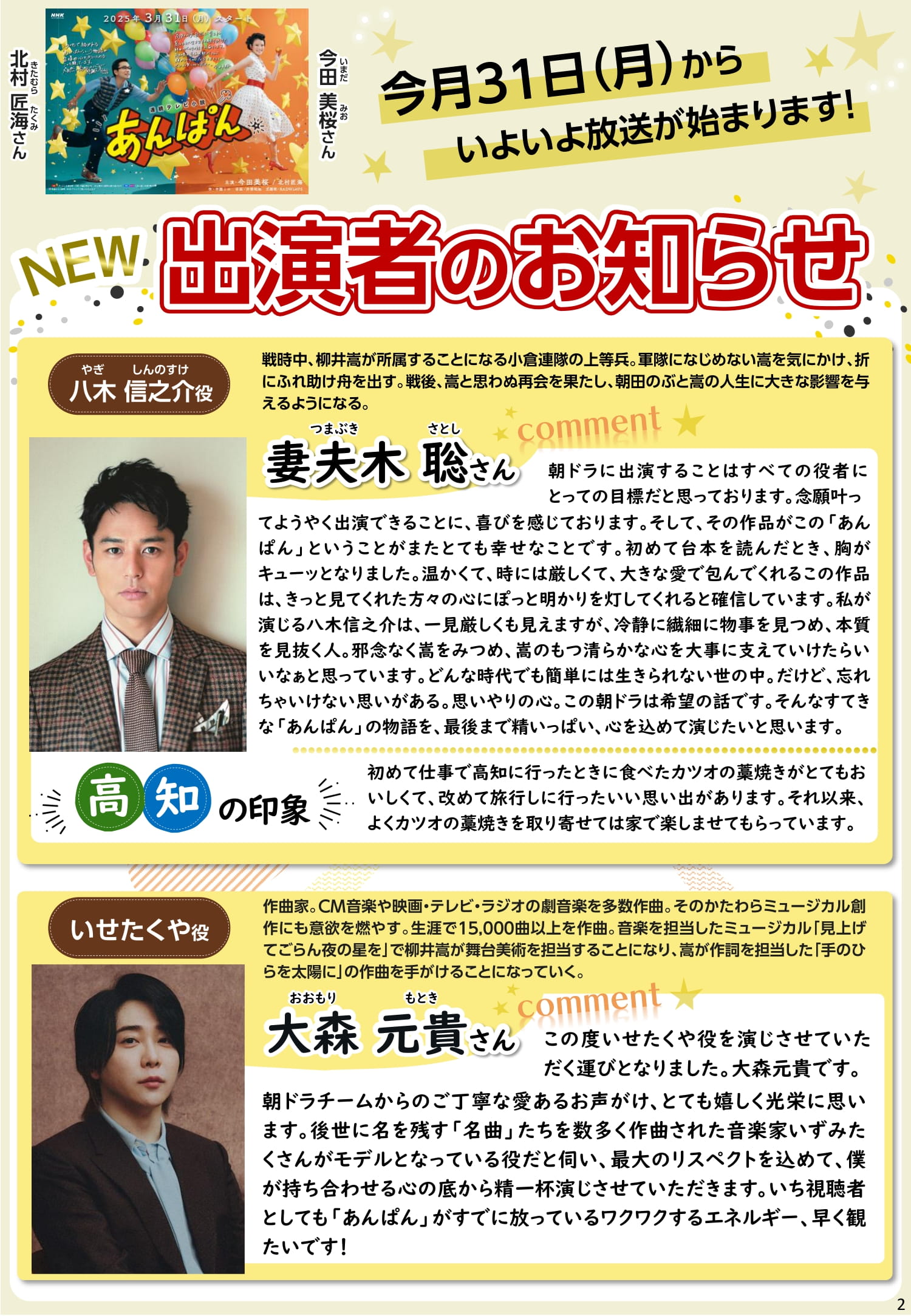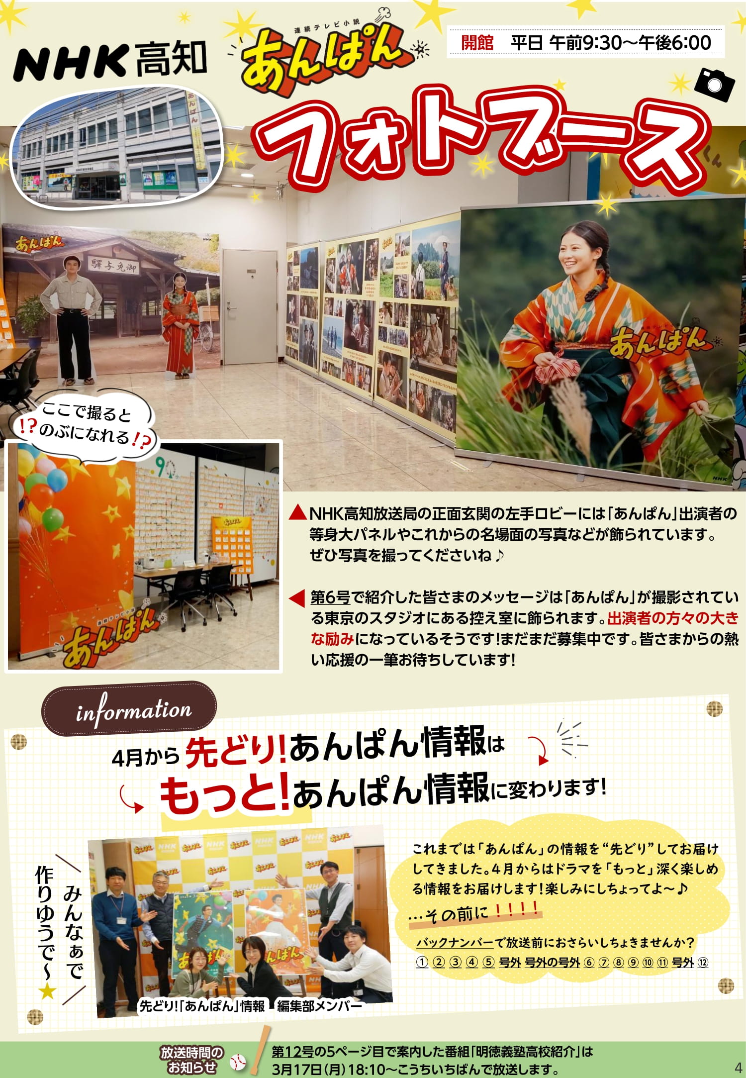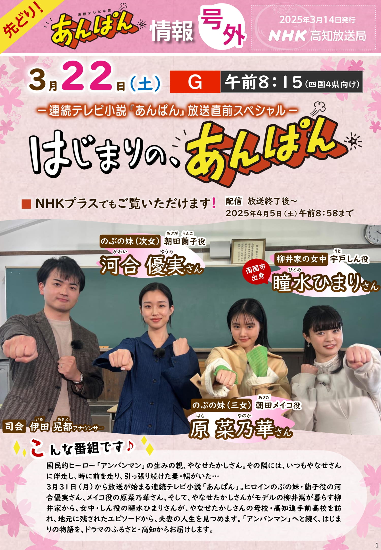 NHK高知放送局様より先どり!あんぱん情報3月号外が届きましたのでご案内いたします。