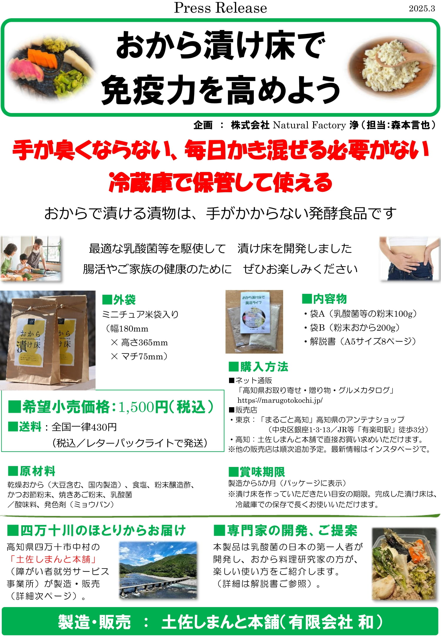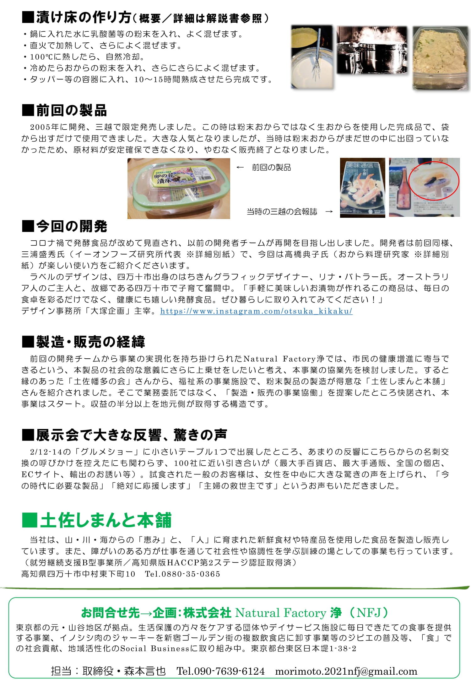 さて、県人会員でもあり、株式会社 Natural Factory 浄(NFJ)の取締役 森本言也様より、おから漬け床のご案内が届きました。