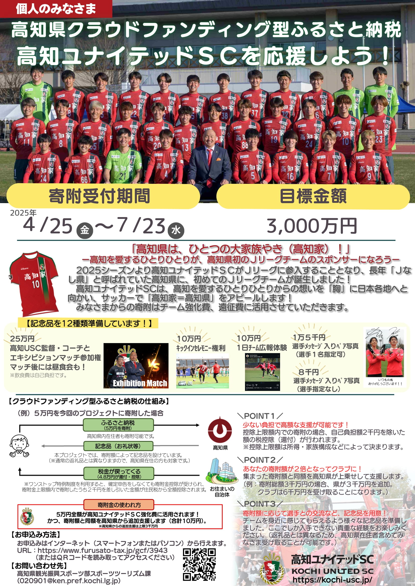 「あなたも胸スポンサーに!高知を愛するひとりひとりが高知県初のJリーグチームのスポンサーになろう!」高知県クラウドファンディング型ふるさと納税 実施のお知らせ | 高知ユナイテッドスポーツクラブ