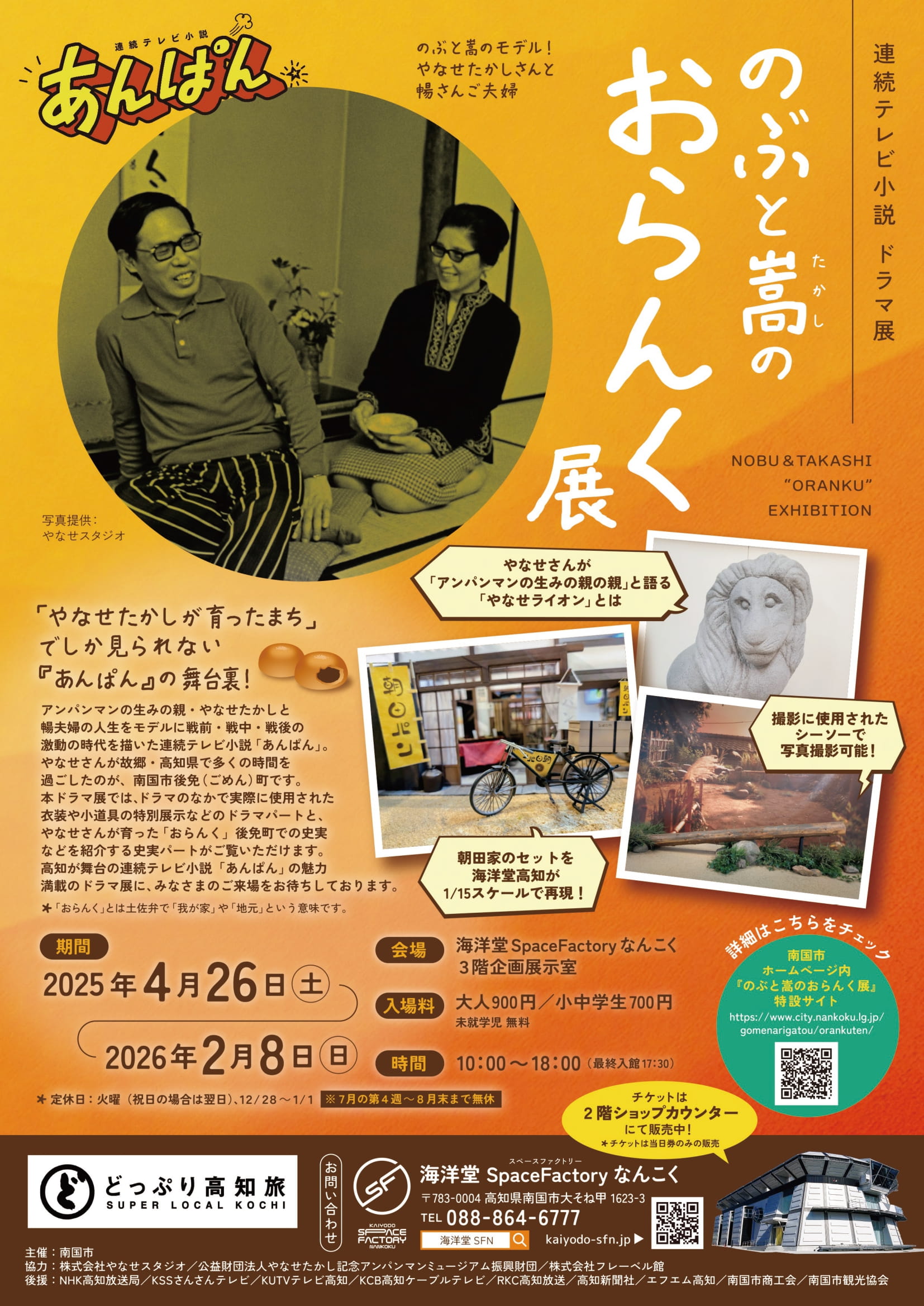 今回は、「南国市観光案内所&観光定時ガイド」と「連続テレビ小説 ドラマ展 「のぶと嵩のおらんく展」」についてご紹介いたします。